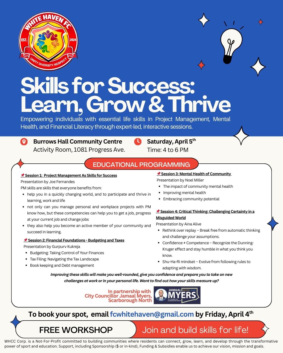 Welcome to WHCC Corp.'s Educational Sessions Program, a cornerstone of our vision to foster community spirit and synergy. As the first club in Scarborough to offer free football and educational opportunities, we are committed to providing a space where residents can connect, grow, learn, and develop through the transformative power of education.